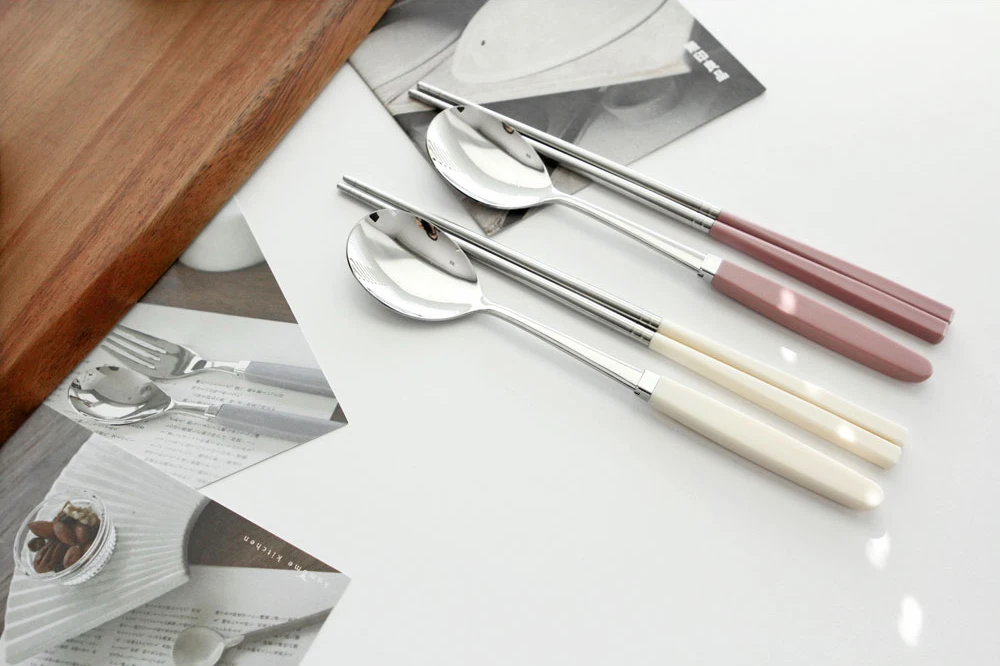 Stainless Steel Spoon & Chopsticks Set β Modern Korean Style (6 Colors)